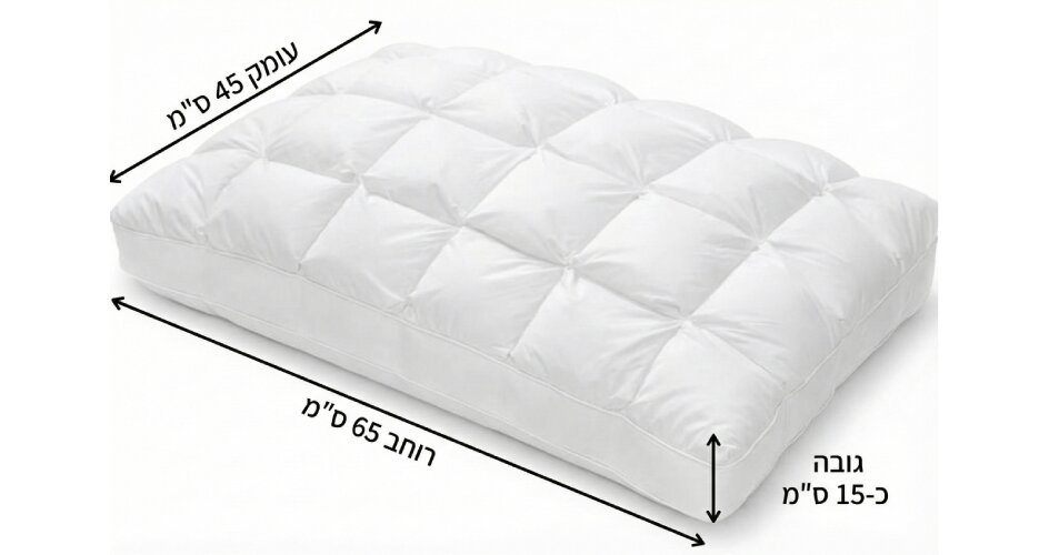 גודל הכרית כ- 45X65 ס"מ ומתאימה לכל ציפה בגודל סטנדרטי של 50X70 ס"מ