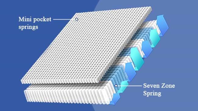המזרן כולל מערכת קפיצים דו-שכבתית (Dual-Layer Springs) , המורכבת מקפיצי כיס מיני (Mini pocket springs) ומקפיצי שבעה אזורים (Seven Zone Spring). מערכת זו מעניקה תמיכה חזקה ונקודתית לכל חלקי הגוף.