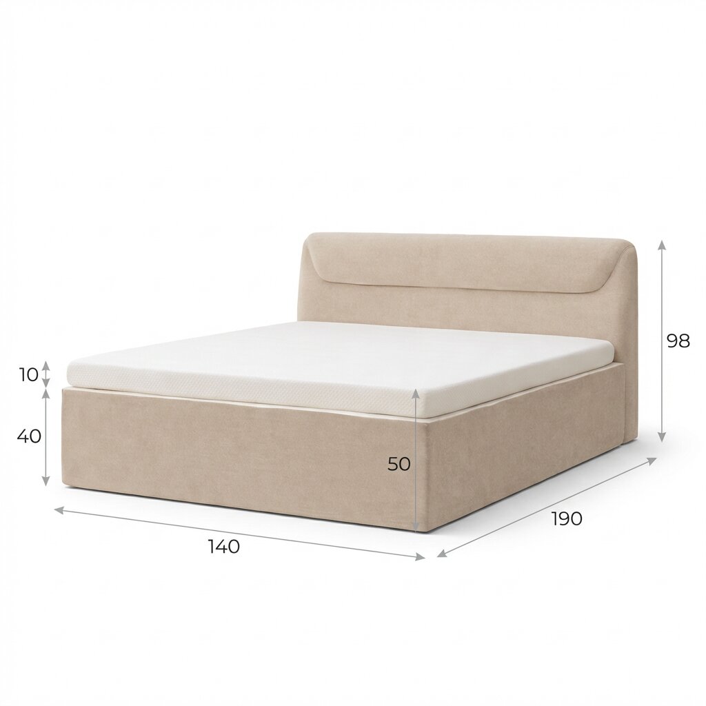 דגם 140/190: רוחב כ-140 ס"מ, אורך כ-190 ס"מ. גובה ראש המיטה והבסיס זהים לדגם הגדול.