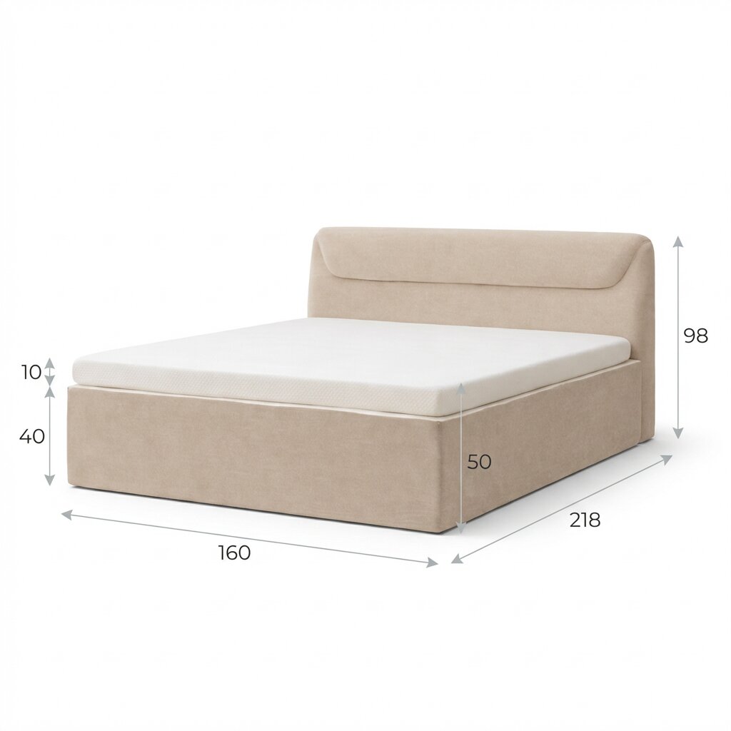 דגם 160/200: רוחב כ-160 ס"מ, אורך כ-218 ס"מ. גובה ראש המיטה כ-98 ס"מ וגובה הבסיס (כולל הטופר) כ-50 ס"מ.