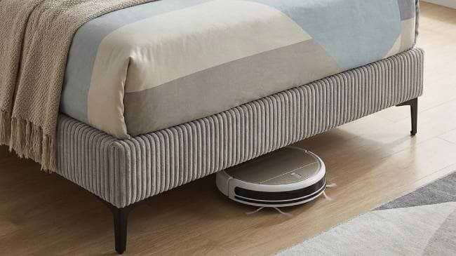 רגלי מיטה מעוצבת בגוון שחור מט, רגליים גבוהות וחזקות המאפשרות ניקיון קל וכניסה לשואב האבק הרובוטי.
