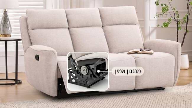 סט סלון 3+2 הכולל ספה תלת מושבית מרווחת וספה דו מושבית מפנקת. שתי הספות מצוידות בארבעה רקליינרים עם מנגנון הפעלה מכני נוח וקל לשימוש - בלחיצה קלה עוברים למצב רגיעה מושלם לצפייה, מנוחה או אירוח.